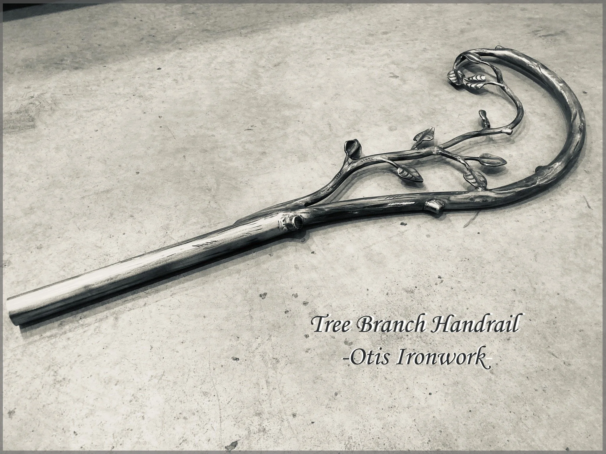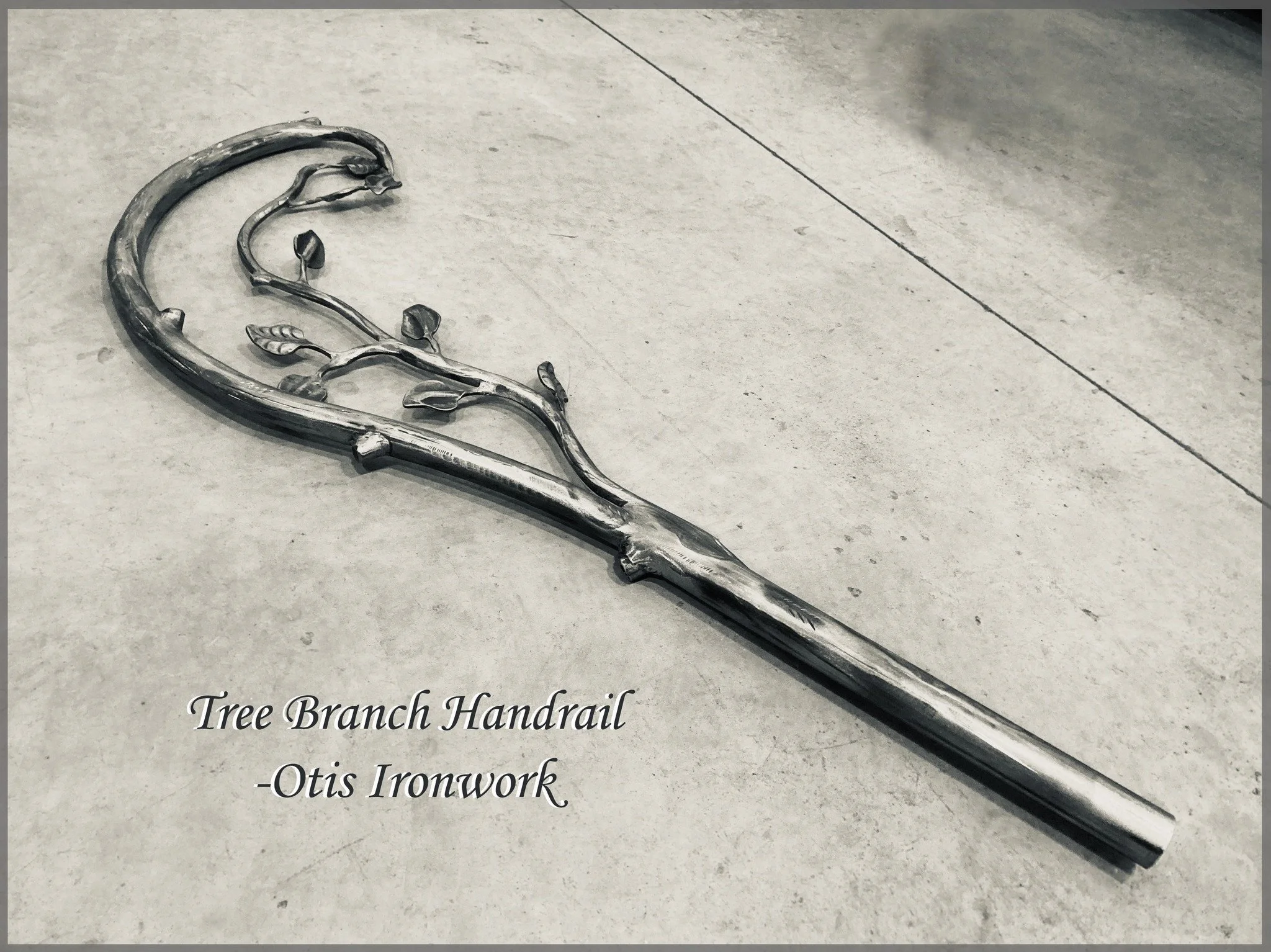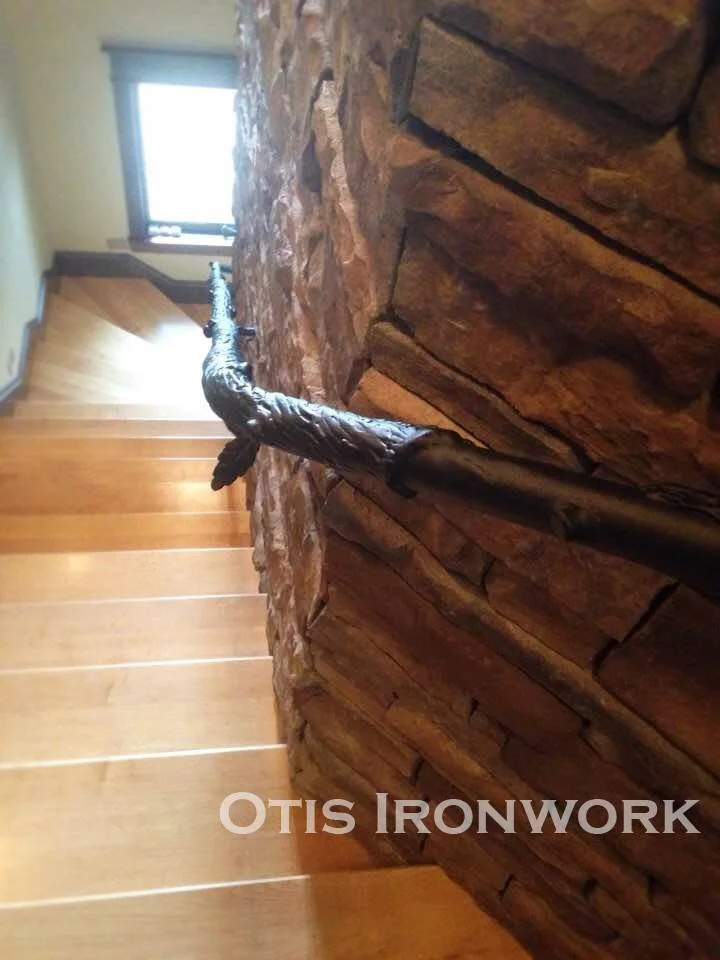 Custom curved railings with tree branch design handcrafted by Otis Ironwork. Whether you are looking for a simpler railing design to increase stair safety or if you want more decorative railings handcrafted for your home. Chad Otis has the ironwork experience to turn your vision into reality.